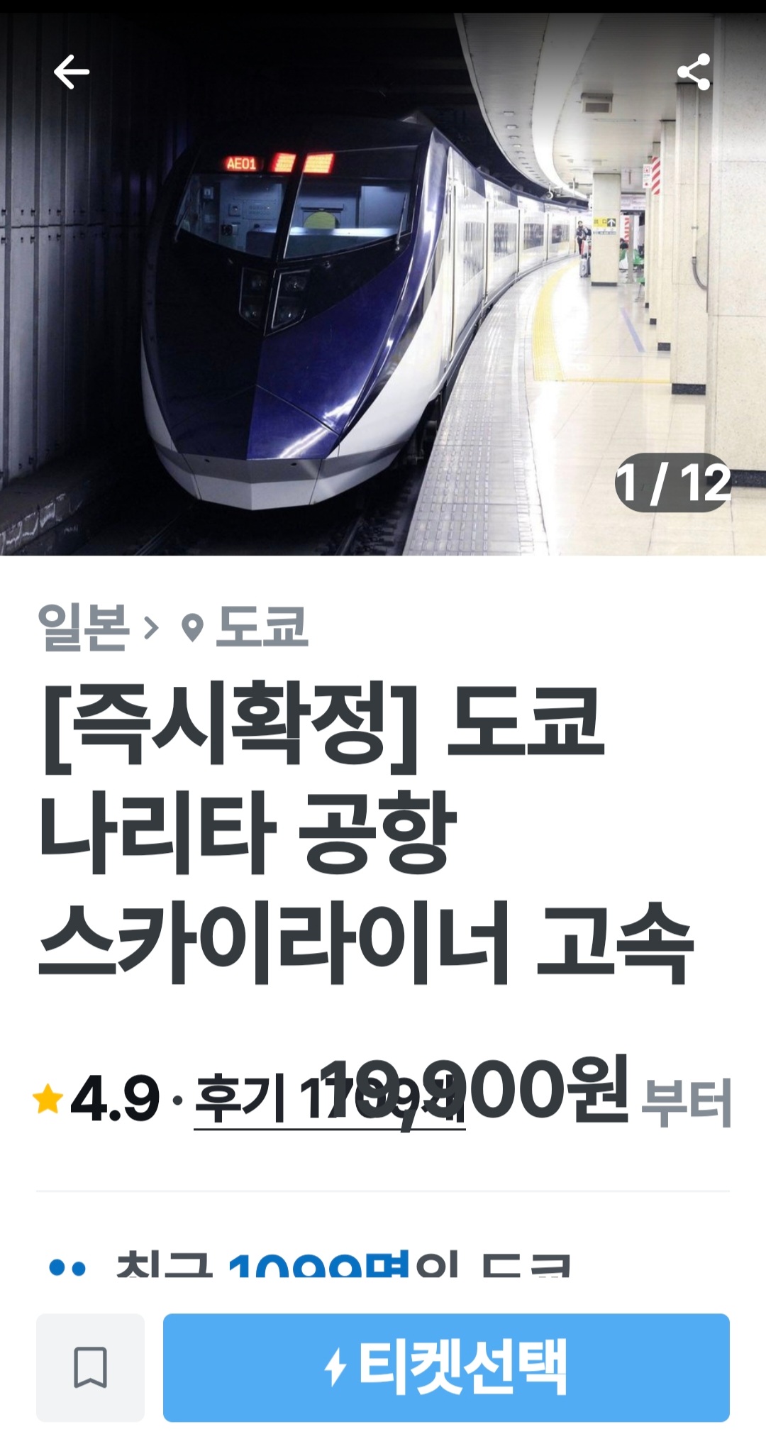 1. 가장 먼저 '마이리얼트립' 어플을 다운받아 주세요. 그리고 검색창에 스카이라이너라 입력하시면 아래와 같은 사진을 찾을 수 있습니다.