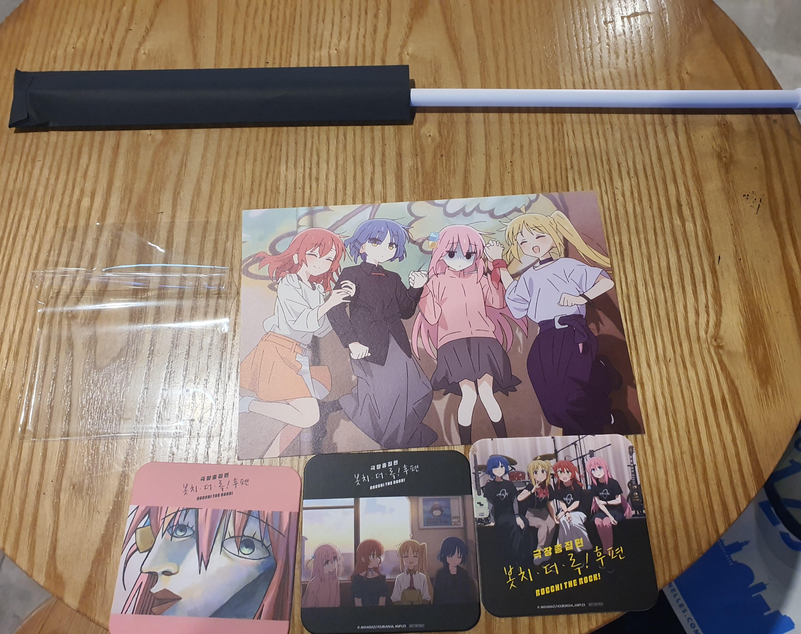 위 사진처럼 깃발 1개와 컵 받침 코스터 3개, 봇치 더 록 멤버가 시모키타자와에서 점프샷 찍은 사진까지 총 5개의 특전 상품을 제공합니다.